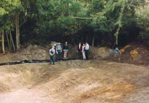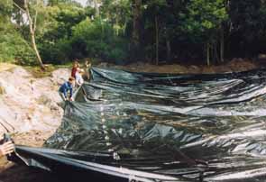 Line with dam liner and cover with top soil. |
